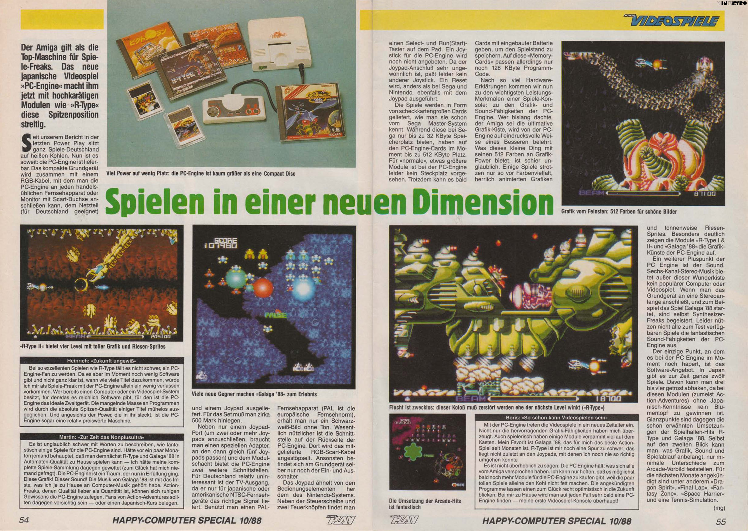 Leute. Der Artikel in der PowerPlay ist von 10/1988. Die besten Amiga Action/Arcade Spiele waren da noch gar nicht draußen. Ja, der Martin Gaksch war damals sehr überschwenglich. Aber was reine Actionspiele angeht ist die PC-Engine schon super aufgestellt. Allein schon die guten Arcade Umsetzungen. Da hatten die Japaner wohl auch oft Zugriff auf die Source Codes (oder haben es gleich selber portiert), während in Europa in ein paar Wochen schnell was nachprogrammiert werden mußte. Und anfangs waren das oft nur 1:1 Atari ST Umsetzungen, die Kiste ist ja dank fehlender Custom Chips bei Actionspielen schon limitiert.